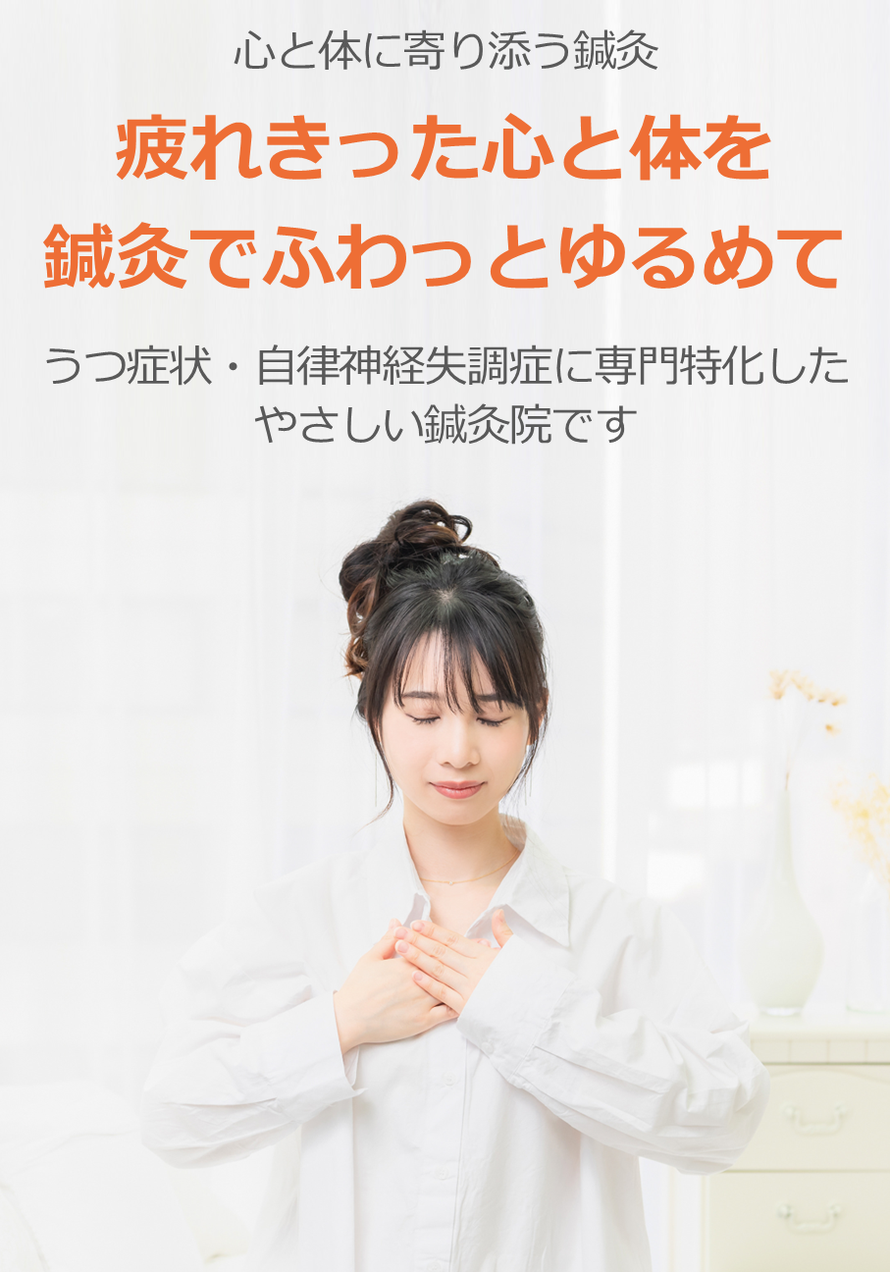 うつ症状や自律神経失調症でお悩みのあなたに、東洋医学と鍼灸の力で寄り添い、根本からの回復をサポートします。